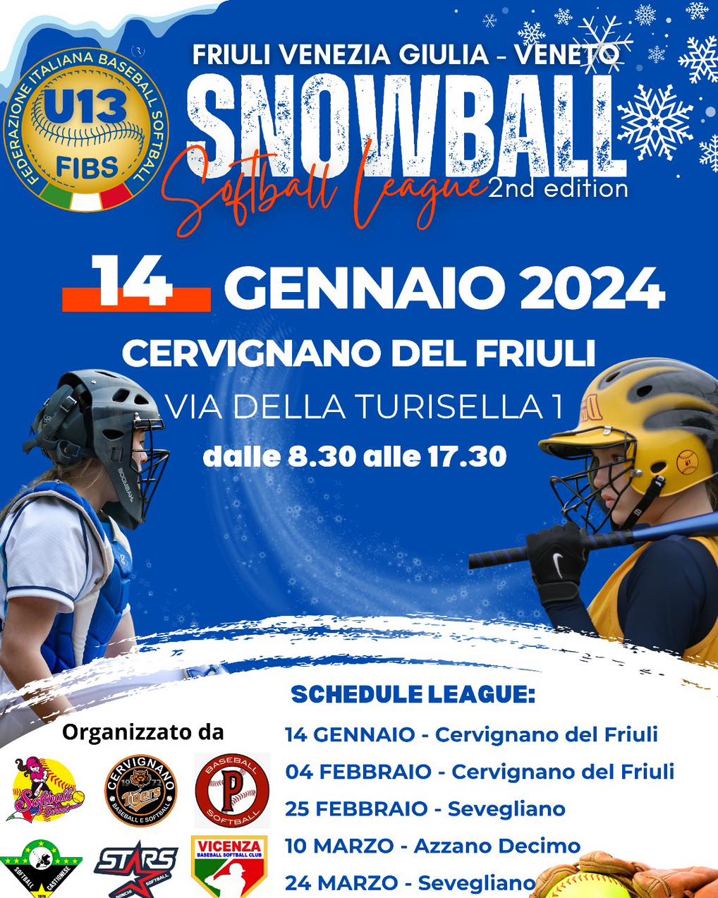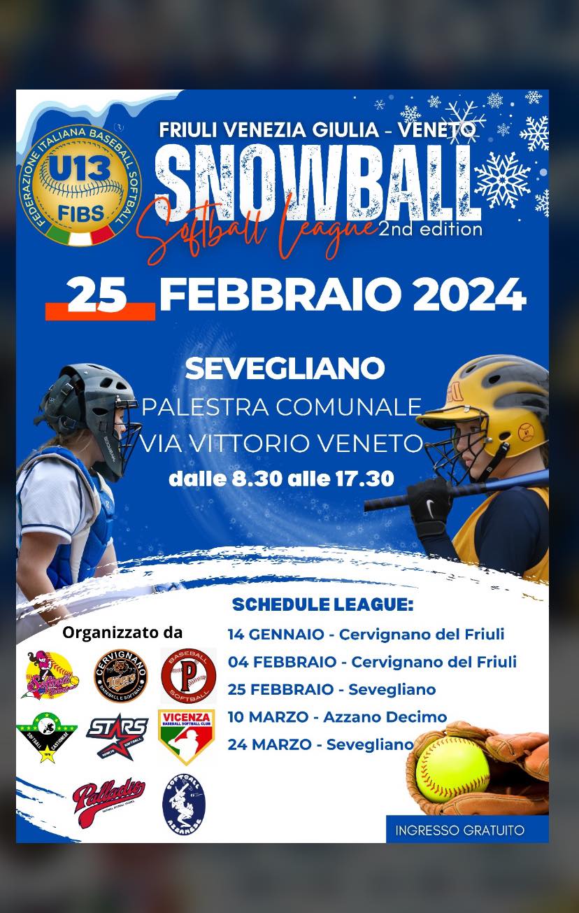 Il 14 gennaio e il 4 e 25 febbraio le U13 della Softball School di Castions delle Mura hanno partecipato alla seconda edizione campionato invernale "Snowball" suddiviso in tre giornate
